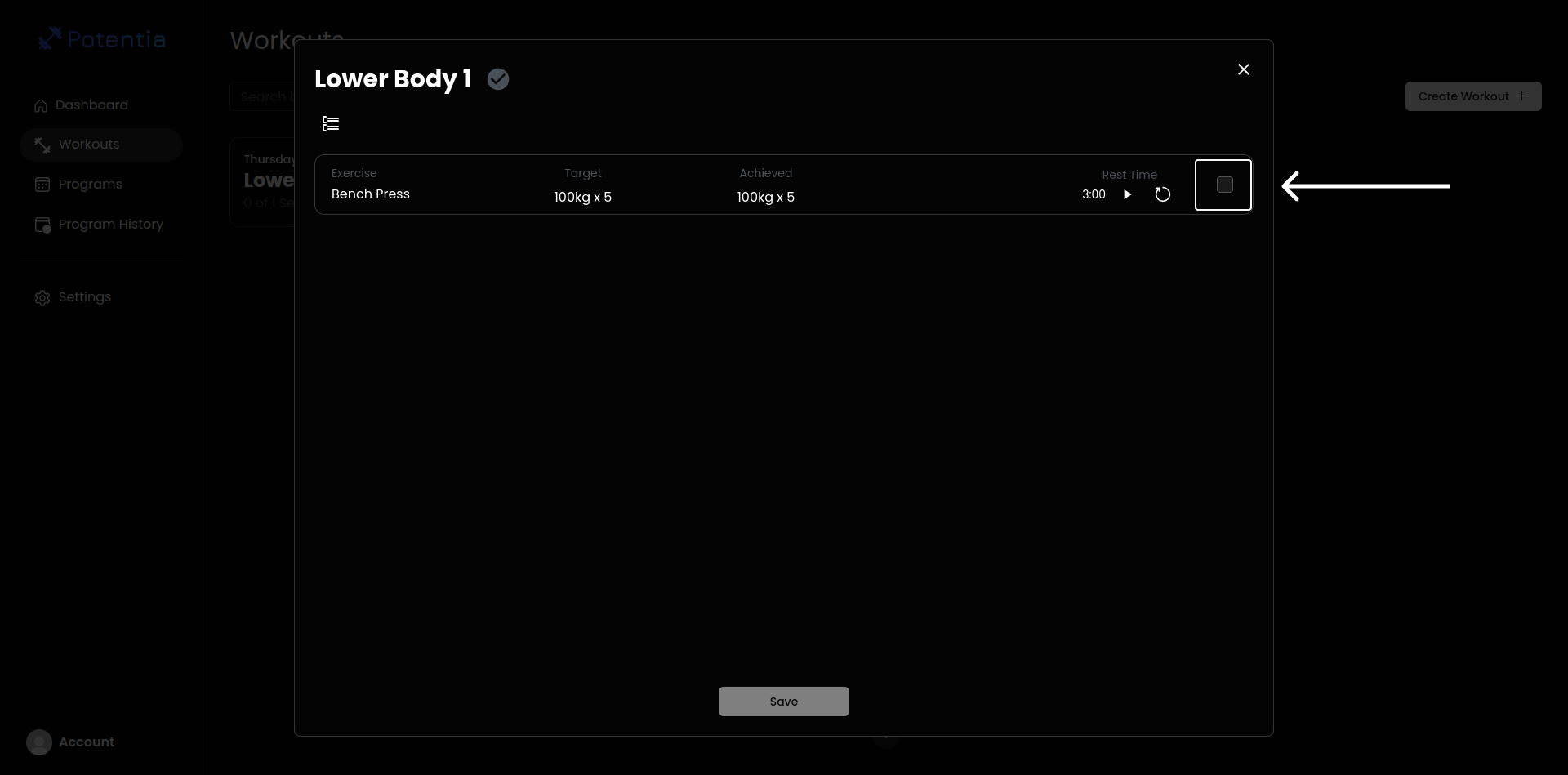 9. Click on the check mark next to the Workout name to mark the Workout as complete.